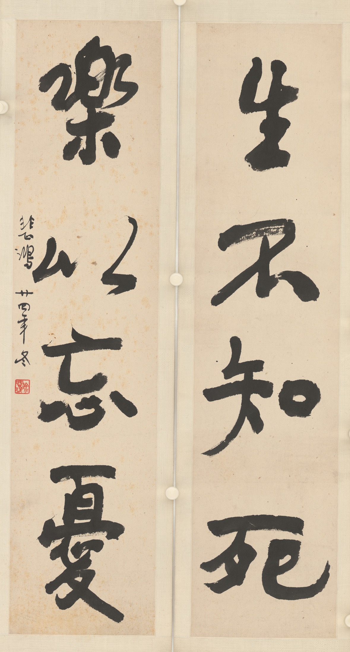 书法《生不知死,乐以忘忧》是徐悲鸿在四川期间写的,从作品中,我们能感受到一种难得的、豁达乐观的精神状态。他在四川度过了一段难得的时光,也感受着川人于困顿中依然坚持的乐天与顽强。这种地域性格的濡染,同样内化到了他的艺术气质之中。